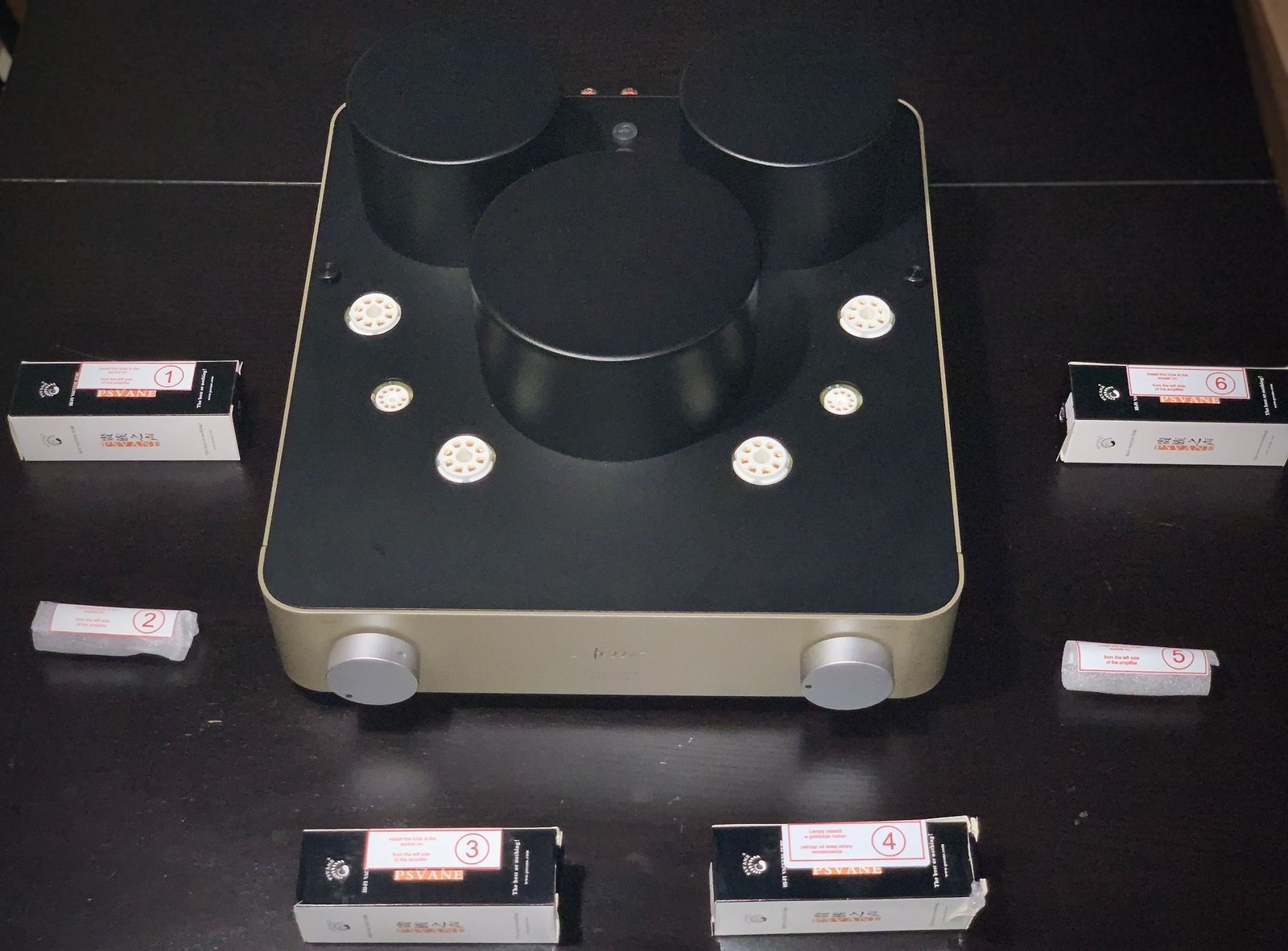 This amplifier weighs 21kg. That may not have made it easy to place its rubber feet on top of the Ansuz adjustable resonance control “feet” that I used in this test. It’s time to put the optional PSVane valves (the list price of €2620 for this integrated gets you the original Electro-Harmonix-made valves). Four EL34 for the power stage and two 6N2P on the front end. I used one glove from the supplied pair. Only one to avoid eventual slipping, as advised by Francisco Monteiro, from Ultimate Audio’s store in Porto. If you didn’t know yet, here’s the tip.