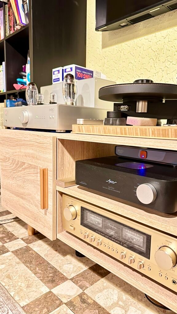 A experiência inicial com as KT170 e as Bella Luna foi reveladora. Mas impôs-se a pergunta inevitável: como se comportaria o Ti100 MkII com colunas mais “terrenas”, como as minhas Revival Atalante 3?